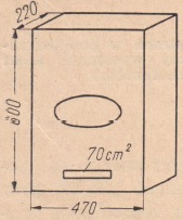 Zasada działania obudowy typu "Bas-reflex" oraz sposób jej wykonania zostały wyczerpująco omówione w nrze 12/60. Wymiary skrzynki pokazane są na rys. 10, a wygląd zewnętrzny na rys. 11.