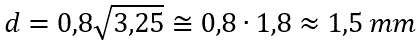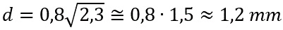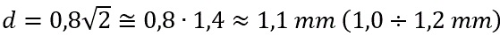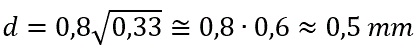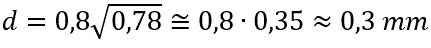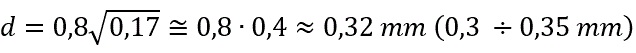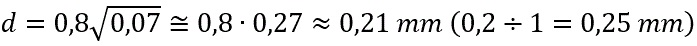 Ostatnią czynnością będzie obliczenie odpowiednich średnic drutu, jakie musimy zastosować, aby transformator działał poprawnie. Jest to również proste, ponieważ korzystamy z następującej zależności: