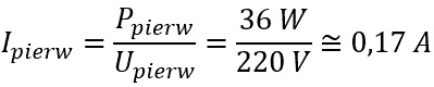 Zatem moc pobierana z sieci będzie wynosiła 36W. Ta wartość posłuży nam do dalszych obliczeń.