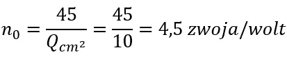 Znajdujemy ilość zwojów przypadających na 1 wolt napięcia:
