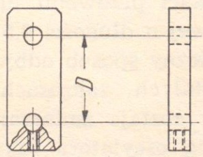 Nacinarkę dobrze jest zaopatrzyć ponadto w prowadnicę ceratki, a to w celu prostopadłego (do krawędzi ceratki) i symetrycznego nacinania ząbków po obu jej stronach. Prowadnicę taką można wykonać z kawałka rezoteksu lub turbaksu, umocowując na niej dwa kątowniki L 10x10mm za pomocą śrub M4 w podłużnych otworach wykonanych w poprzek prowadnicy (rys. 6).