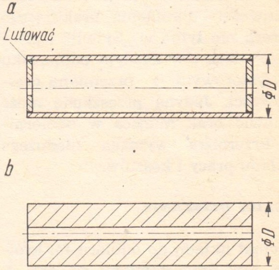 a - z rury stalowej, b - z pręta stalowego (∅D - równe średnicy koła zębatego)