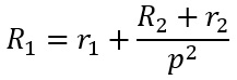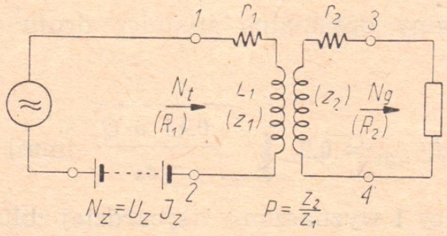 Uzwojenie pierwotne transformatora z1 ma indukcyjność L1 i oporność rzeczywistą r1 zaś uzwojenie wtórne z2 – oporność rzeczywistą r2. Przekładnia zwojowa transformatora pz=z2:z1. Przy należytym nawinięciu uzwojeń ich indukcyjności rozproszenia można pominąć i przekładnia elektryczna p transformatora (decydująca o współczynniku przenoszenia oporności z wtórnej na pierwotną stronę transformatora) jest z dostateczną dokładnością równa przekładni zwojowej pz. Do uzwojenia wtórnego jest włączona oporność obciążenia R2; wówczas oporność „widziana przez źródło prądu” od zacisków 1-2 uzwojenia pierwotnego wynosi: