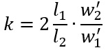- Mając dane l1 i l2 oraz w1’ i w2’ obliczamy:
