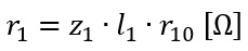 oraz odpowiadającą mu jednostkową oporność r10 [Ω/m], a następnie obliczamy oporność uzwojenia pierwotnego: