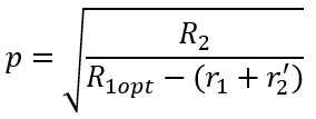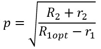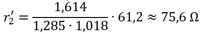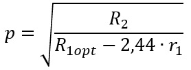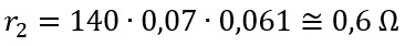- Po wyznaczeniu z równania (3) optymalnego rozdziału przestrzeni uzwojeniowej, obliczamy sprowadzoną (do pierwotnego) oporność uzwojenia wtórnego z zależności: