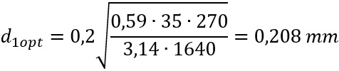 - Mając dane z1 ze wzoru (9), obliczamy optymalną średnicę drutu uzwojenia pierwotnego: