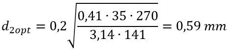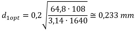 - Obliczamy optymalną średnicę drutu uzwojenia wtórnego: