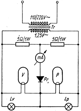- dwie żaróweczki 2-woltowe (Lv, Lp).