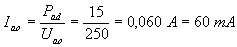 Np. dla pentody głośnikowej AL4 mamy Pad = 9W. Stąd przy napięciu prostownika Uao = 250V wynika: