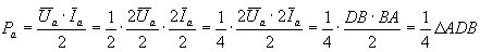 Patrząc uważnie na wzór (3) widzimy, że przypomina on wzór na powierzchnię trójkąta prostokątnego o bokach Ua i Ia. Gdyby obie amplitudy (dodatnia i ujemna) prądu i napięcia był równe, to powierzchnie trójkątów ACP i PoEB byłyby również równe i wielkość powierzchni każdego z tych trójkątów byłaby równa mocy użytecznej wydzielanej przez lampę podczas pracy. Dlatego też trójkąty ACP i PoEB nazywamy trójkątami mocy. Średnia moc użyteczna jest średnią arytmetyczną powierzchni obu trójkątów. Można ją obliczyć z trójkąta dużego ADB dzieląc jego powierzchnię przez 4. Mamy bowiem zależność: