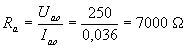 Ua = Iao . Ra = 36 . 10-3 . 7 . 103 = 250V