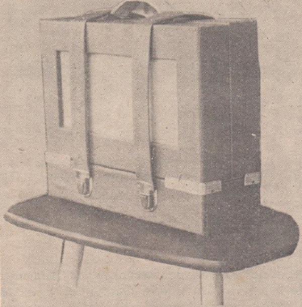 Transformator sieciowy obliczono i wykonano w założeniu krótkotrwałej pracy, nie dłuższej niż 2-3 godziny (przekrój rdzenia 5cm2), stosując jednocześnie nowoczesny układ prostowania przy użyciu suchego prostownika. W zasilaczu pominięto dławik filtra, kompensując tętnienia sieciowe za pomocą specjalnego uzwojenia na transformatorze wyjściowym. Transformator ten ma małe rozmiary, ponieważ aparatura nie jest przewidziana do odtwarzania bardzo niskich tonów. Dlatego też ekrany zestawów głośnikowych mogą być niewielkie. Ponadto dla zmniejszenia rozmiarów urządzenia zastosowano szereg interesujących rozwiązań mechanicznych przedstawionych częściowo na rys. 2.