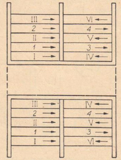 Na rys. 2 pokazany jest schemat uzwojeń takiego transformatora, a na rys. 3 rozmieszczenie uzwojeń.