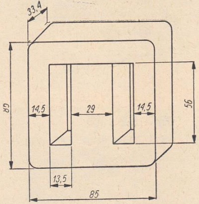 Rys. 4. Wymiary rdzenia transformatora wyjściowego.