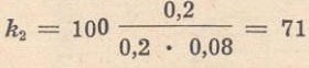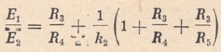Dla przykładu obliczmy układ dla lampy 6J5 (połówka lampy 6SN7). Oporność R2=0,1MΩ, a oporności R3=R4=R5=0,25Ω. Wtedy k=14, a stosunek napięć E1/E2 będzie równy 1,21, co dla wzmacniacza Hi-Fi jest nieodpowiednie. W naszym przypadku rozporządzamy jedną połówką lampy ECC83. Współczynnik wzmocnienia tej lampy wynosi 100. Ponieważ R2=0,2MΩ, a oporność wewnętrzna lampy wynosi 80kΩ, to jej wzmocnienie napięciowe będzie: