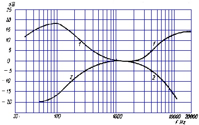 W kanale niskotonowym (na schemacie dolnym) osłabienie wielkich częstotliwości uzyskuje się dzięki odpowiedniej charakterystyce ujemnego sprzężenia zwrotnego. Zastosowane ujemne sprzężenie zwrotne jest silniejsze dla częstotliwości wielkich. Obwód tego sprzężenia łączy anodę lampy końcowej z siatką tejże lampy poprzez kondensator i potencjometr. Dodatkowo transformator wyjściowy jest zabocznikowany kondensatorem.