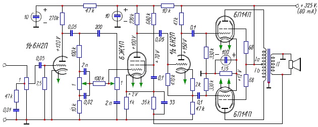 Prosty wzmacniacz 2-lampowy