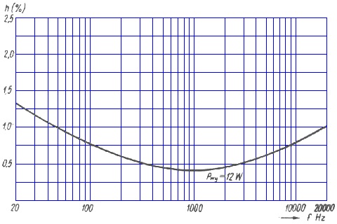 Jak wynika ze schematu, pierwszy stopień wzmacniacza nie jest objęty pętlą ujemnego sprzężenia zwrotnego. Pracuje on jednak przy bardzo małych napięciach, wobec czego współczynnik zawartości harmonicznych nie przekracza 0,1%.