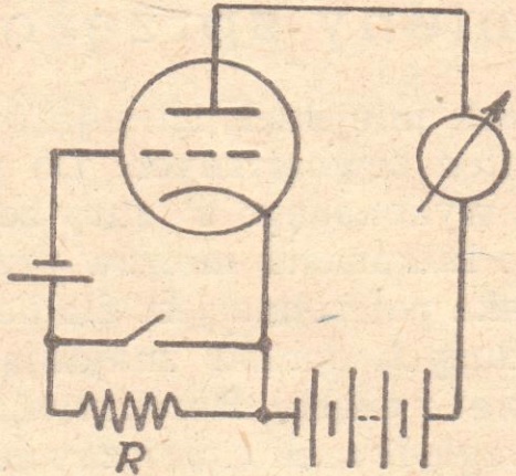 Zmiany prądu anodowego podczas zwierania i rozwierania oporu "R" wskazują złą próżnię w lampie. Miarą dobroci próżni jest wielkość prądu siatkowego "Is" w mikroamperach, którego wartość - obliczona z zależności':