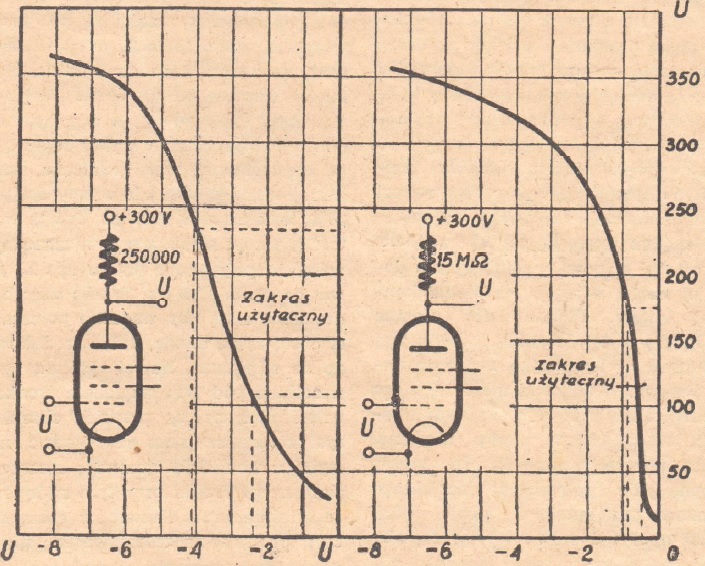W pierwszym, prosta część charakterystyki jest bardziej rozległa i przez to można otrzymać większe napięcia anodowe zmienne. Wzmocnienie jednak jest około trzy razy większe przy zastosowaniu wielkiej oporności obciążenia. Ponieważ lampa końcowa wymaga do wysterowania zaledwie kilku woltów skutecznych, osiągalne napięcia, nawet i w tym przypadku wyższe od 50 woltów (od szczytu do szczytu - odpowiada około 17 woltów skutecznych) wystarcza z nadmiarem a nawet pozwala na użycie pewnego stopnia ujemnego sprzężenia zwrotnego.