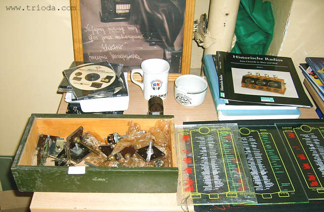 W Sali Konferencyjnej wydzielone zostało miejsce na mini-giełdę. Tym razem była ona bardzo skromna, choć nie zabrakło bardzo interesujących eksponatów. Jeśli chodzi o mnie to bardzo spodobały mi się skale do Elektritów oraz radioodbiornik Philips typ 456A (na Forum Triody była dyskusja, zgodnie z którą jest to Kosmos K83, jeśli chodzi o mnie to przypomina mi typowego Philipsa) odnaleziony podczas prac ziemnych na terenie Złotych Tarasów w Warszawie. Oczywiście fakt "odnalezienia" nastąpił przed zbudowaniem Złotych Tarasów.