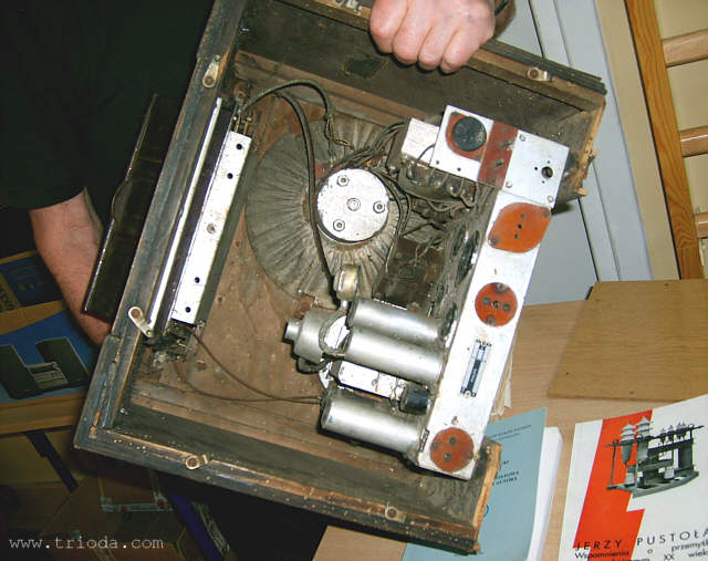 Fot. 81. Fragment mini-giełdy - radioodbiornik z wykopalisk pod Złotymi Tarasami. Obudowa w całej okazałości. Wygląda naprawdę nieźle zważywszy na fakt, że wymagała suszenia przez kilka miesięcy!!!