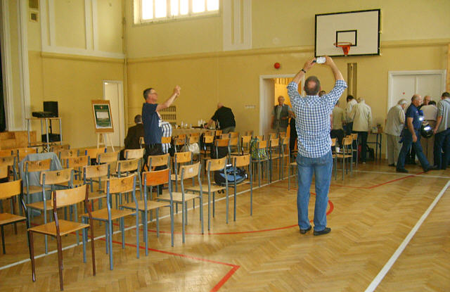Fot. 4. Przed rozpoczęciem Spotkania - ja bardzo szanuje swój aparat, ale niektórzy postanowili potrenować rzut do kosza smartfonem - to nowa dziedzina sportu XXI wieku.