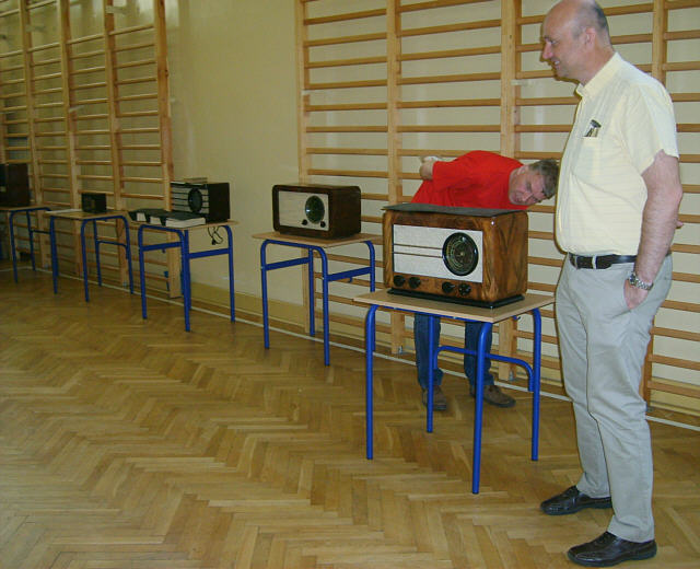 Fot. 5. Przed rozpoczęciem Spotkania - no i po zabawie. Od tej chwili już nie da się zrobić zdjęcia radia bez kolekcjonera w tle. To minus dla mnie jako fotografującego i duży plus dla kolekcjonerów, bo świadczy o ich zainteresowaniu tematyką radio-retro. Przy okazji pozdrowienia dla "zasłaniającego" Kolegi z Forum Trioda.