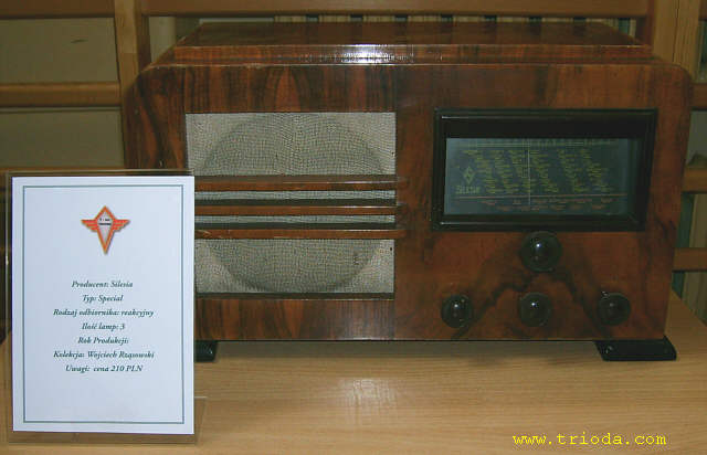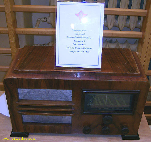 Producent: Silesia, typ: Special. Odbiornik reakcyjny 3-lampowy. Cena 210 zł. Egzemplarz z kolekcji Pana Wojciecha Rząsowskiego.