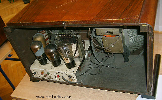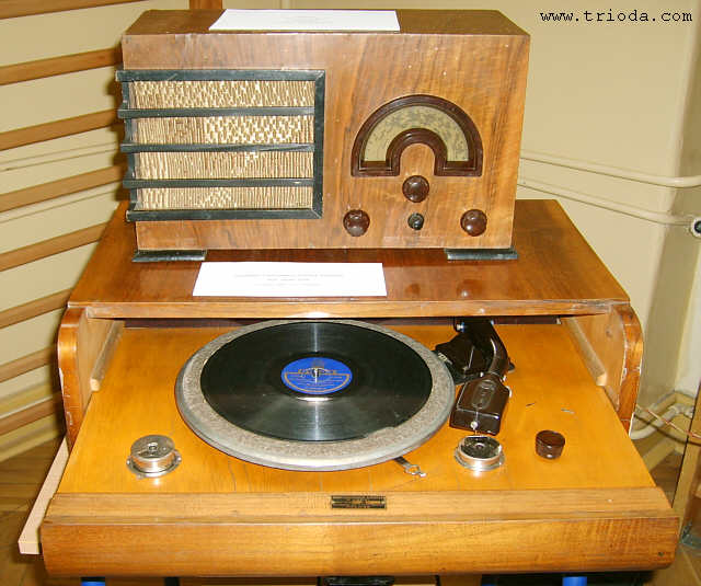 Radjofon, typ: Selector BT3?. Rok produkcji 1936? Lampy: A409, A425, B443. Gramofon zmontowany w firmie Audiofon około 1936r. Eksponaty z kolekcji Pana Marcina Seliwiaka.