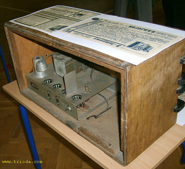 Producent: Radium Katowice, typ: NN. Odbiornik reakcyjny 3-lampowy. Rok produkcji 1933-1935. Eksponat z kolekcji Pana Mariusza Matejczyka.