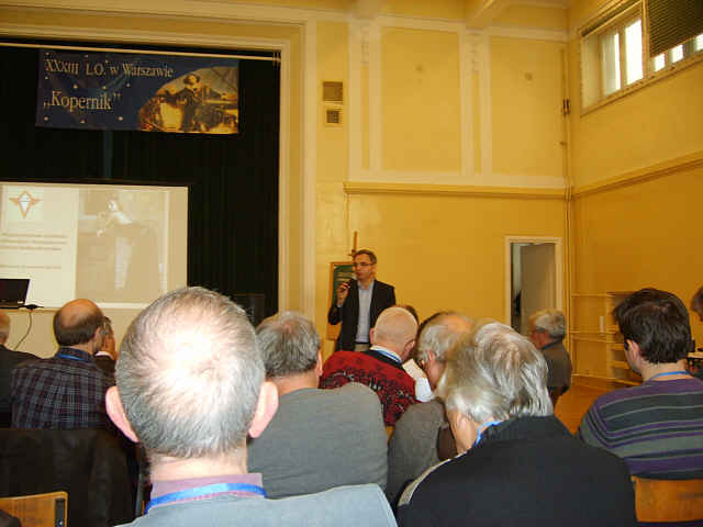 Po słowie wstępnym czas na kolejną prezentację. Poniżej pokazana jest fotografia zrobiona podczas wystąpienia Pana Maurycego Bryxa na temat Polskich Zakładów Radjotechnicznych Natawis.