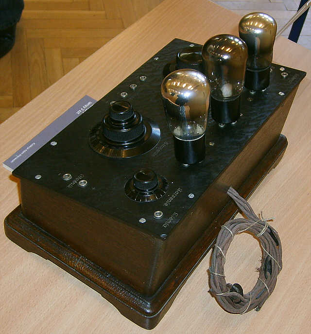 Dyskusje kuluarowe i wnikliwe obserwacje szczegółów konstrukcyjnych prezentowanych radioodbiorników spowodowały, że prelekcja wstępna nieco się opóźniła. Nikt jednak nie miał o to pretensji. I oto nadszedł moment oficjalnej inauguracji. Pan Mariusz Matejczyk mówi o planach dotyczących Towarzystwa Trioda. Na wyświetlanym własnie slajdzie widzimy symbol Towarzystwa oraz miły akcent dodatkowy