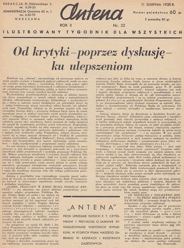 Antena, ROK II, Nr. 32, Ilustrowany Tygodnik dla Wszystkich