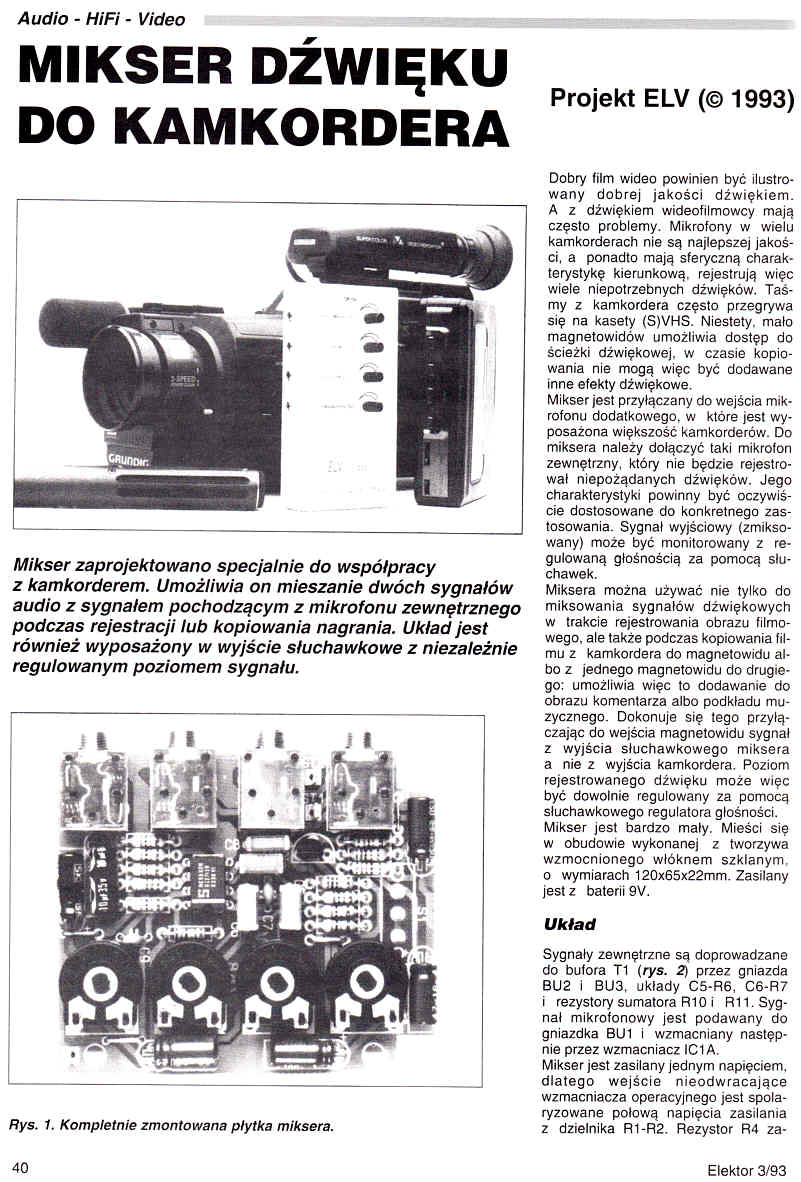 Artykuł: [Strona 26] [Strona 27] - Mikser dźwięku do kamkordera (Projekt ELV) (40)