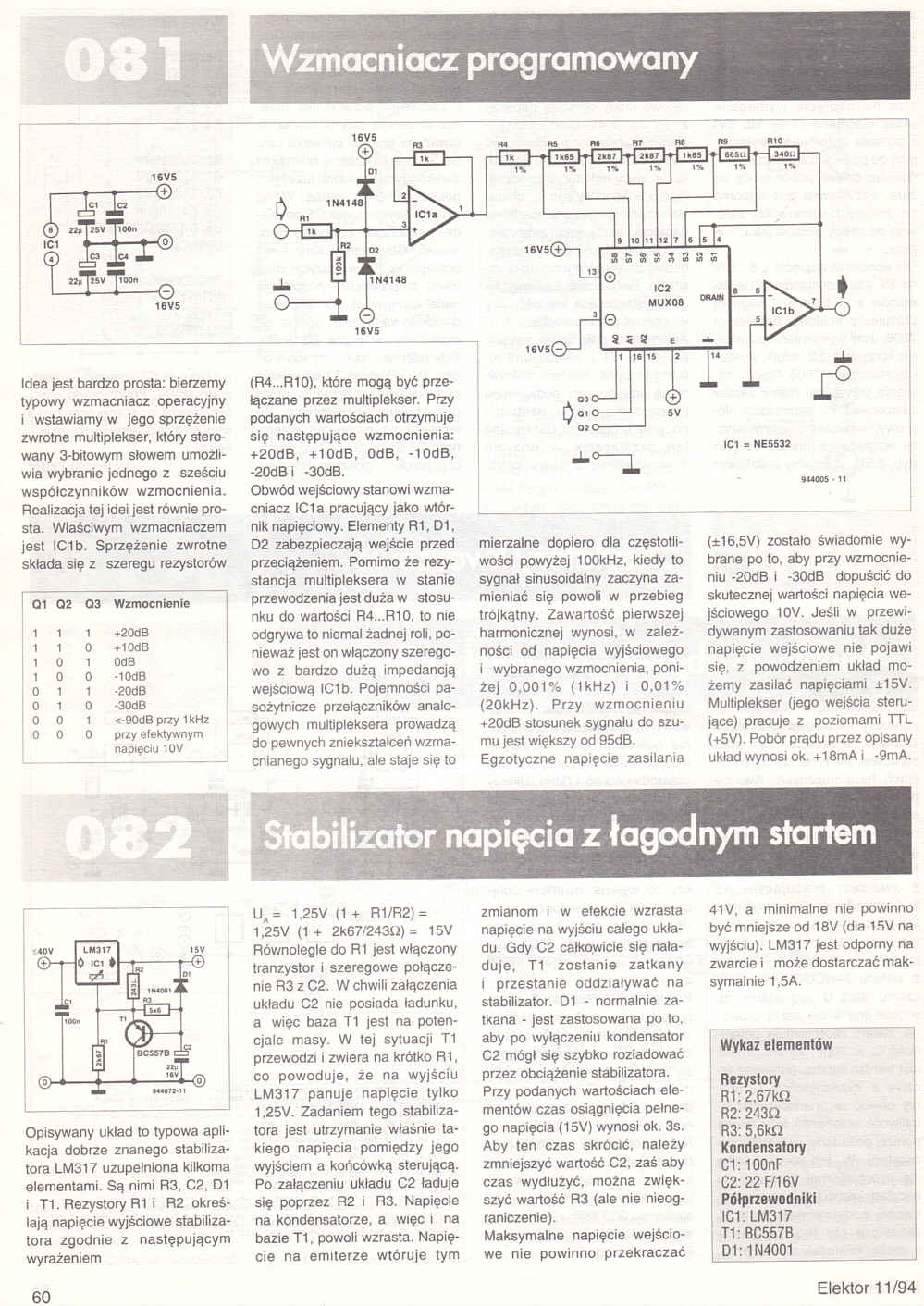 Artykuł: [Strona 60] - 082. Stabilizator napięcia z łagodnym startem (60)