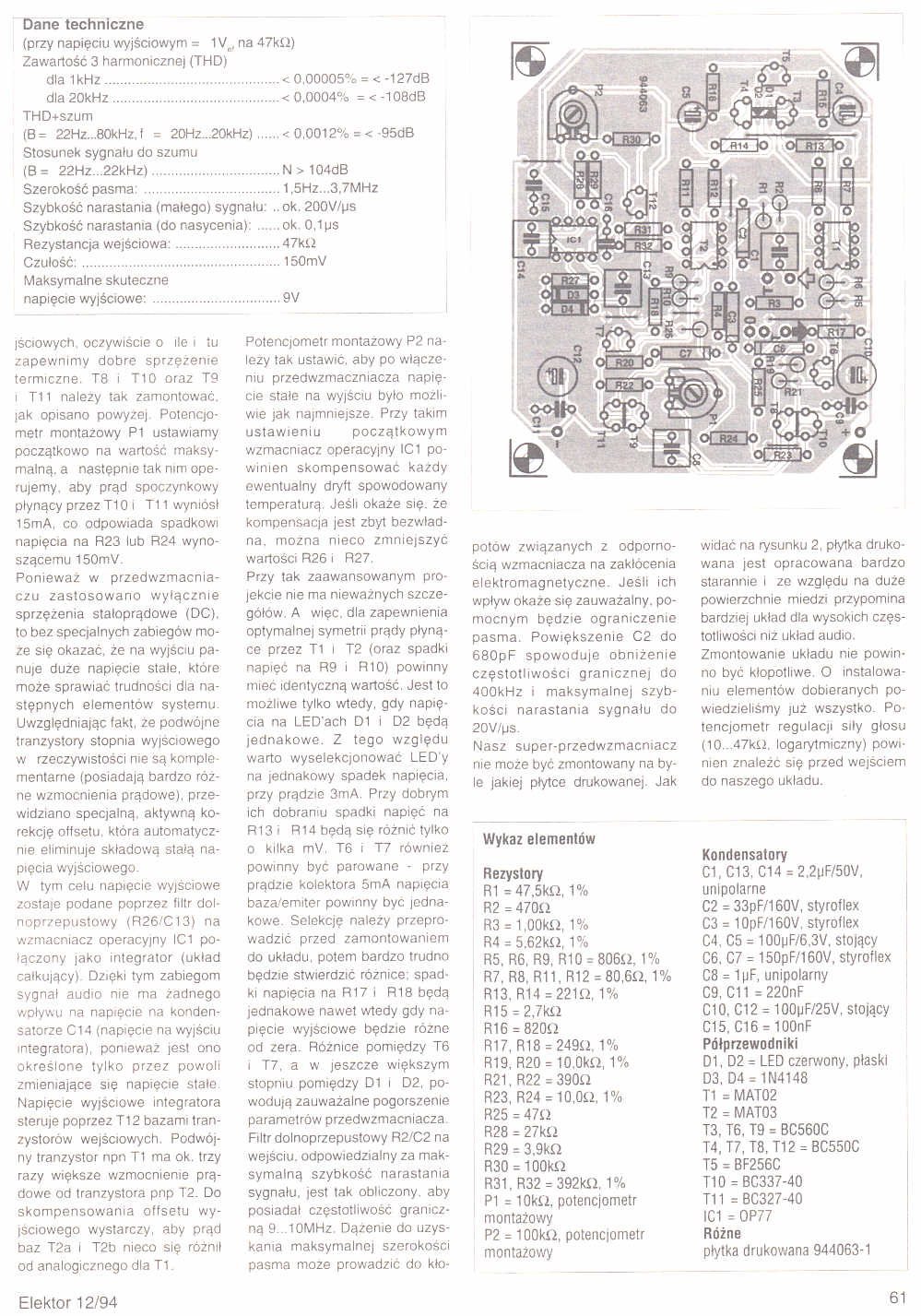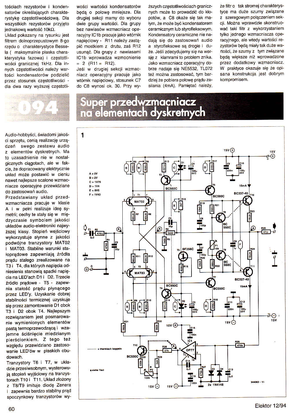 Artykuł: [Strona 59] [Strona 60] - 094. Super przedwzmacniacz na elementach dyskretnych (60)