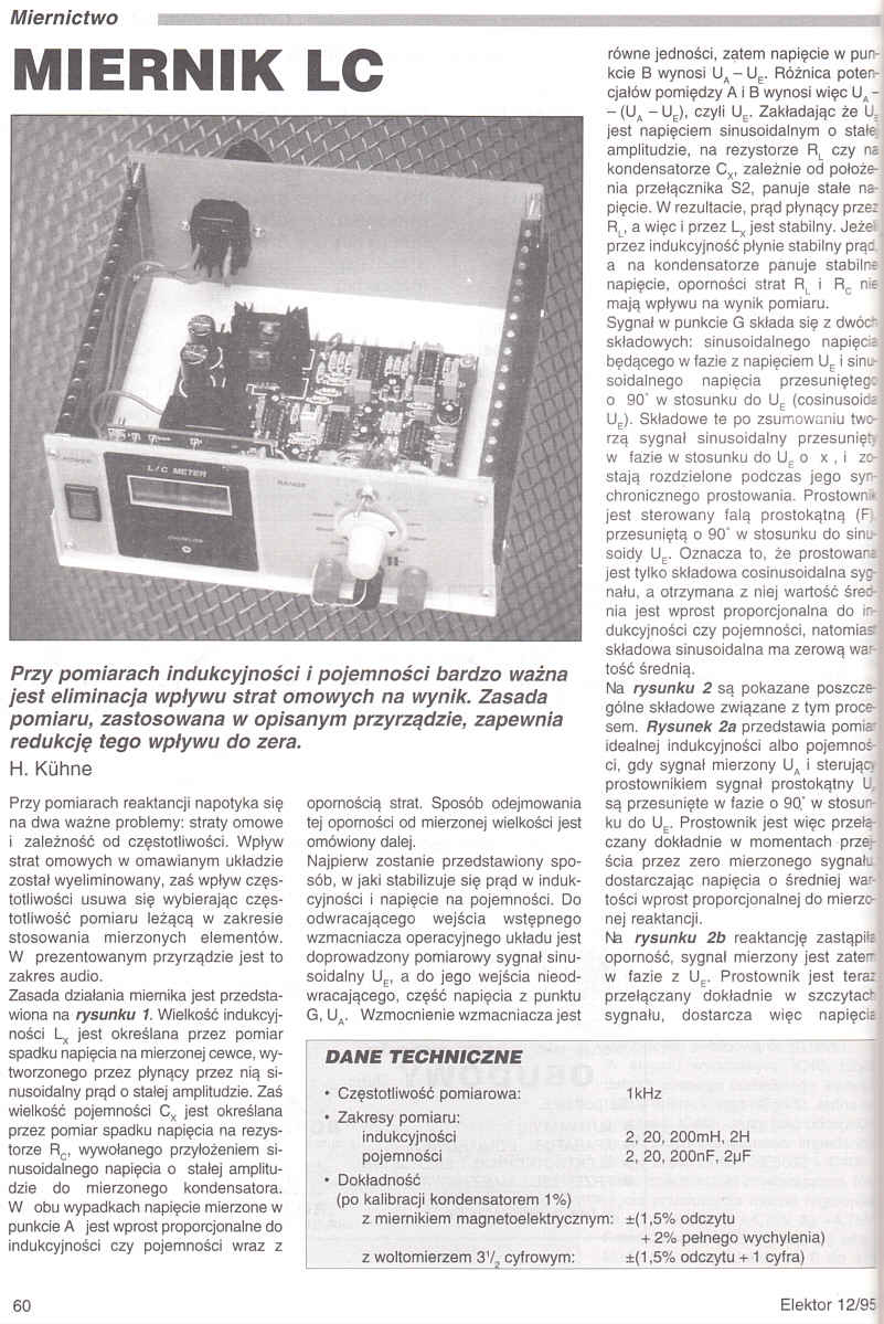 Przy pomiarach indukcyjności i pojemności bardzo ważna jest eliminacja wpływu strat omowych na wynik. zasada pomiaru, zastosowana w opisanym przyrządzie, zapewnia redukcję tego wpływu do zera.