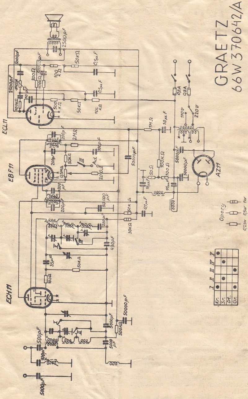 Na schemacie Nr 38 przedstawiony jest układ odbiornika typu GRAETZ 66W 370642/A.