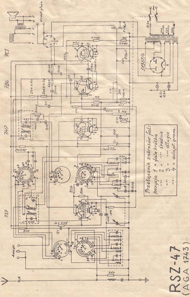 Schemat Nr 39 przedstawia układ odbiornika typu RSZ-47 (AGA - 1743) w wykonaniu P.Z.T.R.