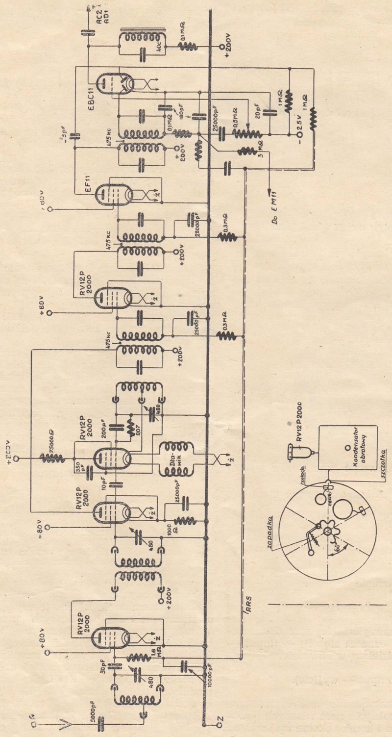 Zbudowałem sobie superheterodynę, której ostateczny schemat po licznych przeróbkach aparatu przesyłam w załączeniu.