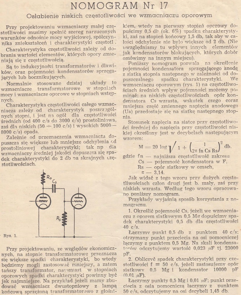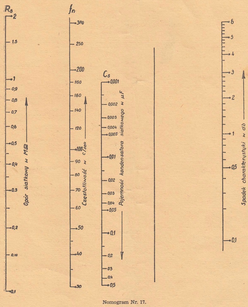 Nomogram Nr 17 - Osłabienie niskich częstotliwości we wzmacniaczu oporowym (31)