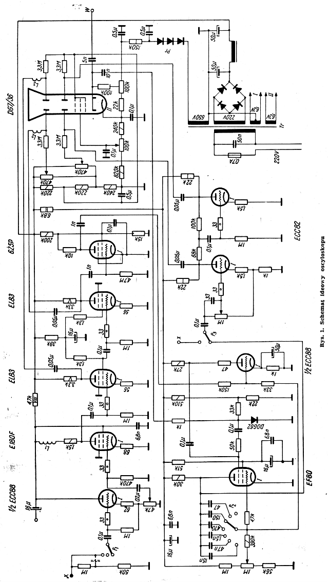 Opisany niżej zasilacz daje napięcie tak ujemne jak i dodatnie o dużej stałości przy zmianach napięcia w sieci od 180V do 230V i przy zmianach obciążenia od zera do maksymalnego prądu obciążenia użytej lampy. W omawianym przypadku przyjęto lampę EL84, której prąd wynosi 40mA.