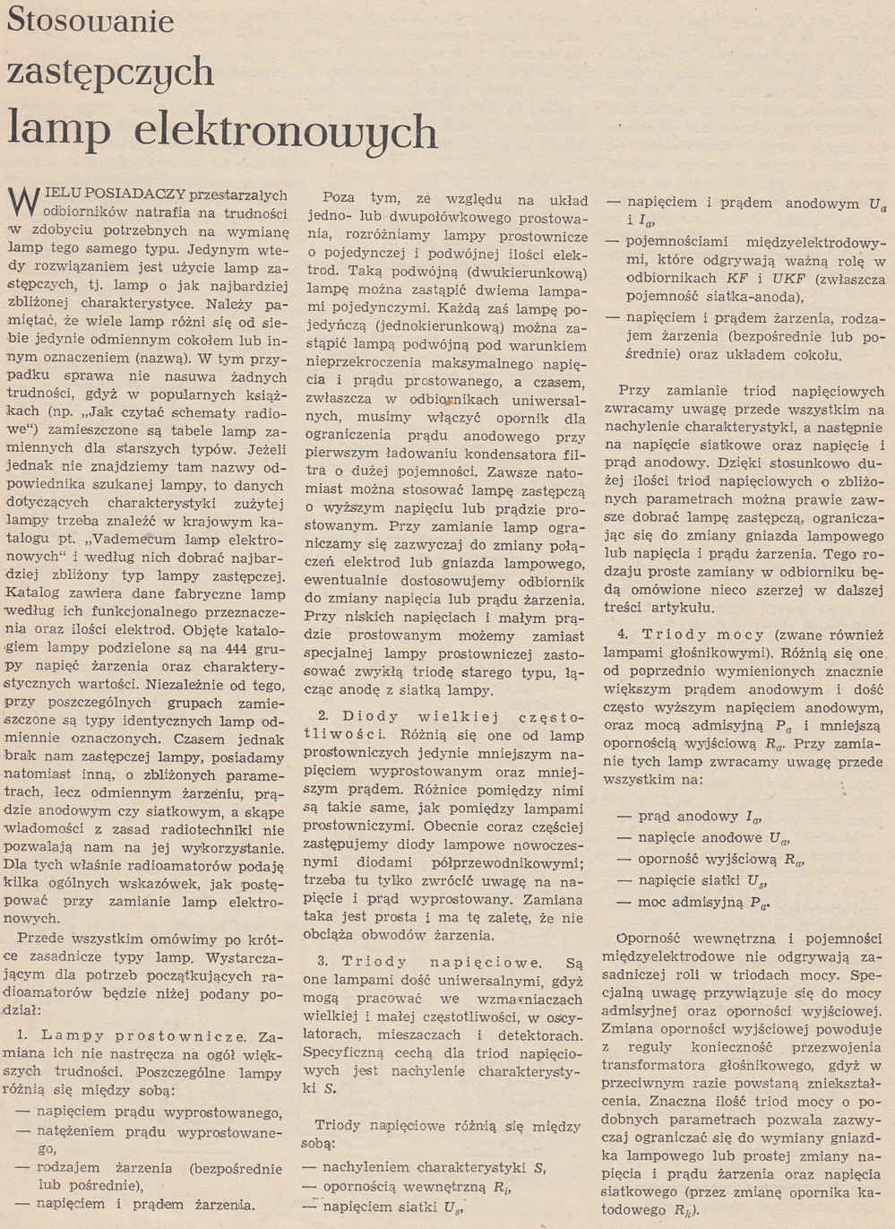 Wielu posiadaczy przestarzałych radioodbiorników natrafia na trudności w zdobyciu potrzebnych na wymianę lamp tego samego typu. Jedynym wtedy rozwiązaniem jest użycie lamp zastępczych, tj. lamp o jak najbardziej zbliżonej charakterystyce.