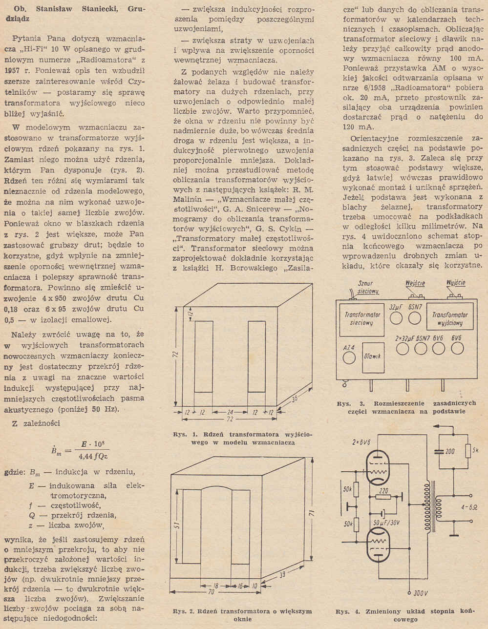 Porada dotyczy pytania odnośnie wzmacniacza "Hi-Fi" 10W opisanego w grudniowym numerze Radioamatora z 1957r.