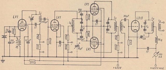 Stosowane początkowo przez polskich nadawców ultrakrótkofalowe jednostopniowe nadajniki samowzbudne - przeważnie z obwodem o stałych rozłożonych - miały wiele wad. Główną z nich była mała stabilność i szkodliwa uboczna modulacja częstotliwości, powstająca przy modulacji siatkowej lub anodowej takiego oscylatora. O wiele lepsze wyniki zapewnia nadajnik dwu- lub trzystopniowy, w którym modulujemy nie oscylator, lecz wzmacniacz mocy.