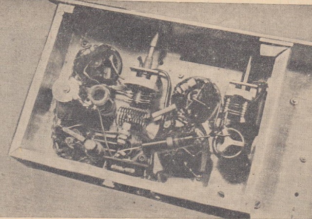 Widok od spodu chassis. Poziomo umocowana cewka obwodu na 48 Mc/s.