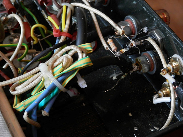 Gniazda wyjściowe były połączone z transformatorami za pomocą tego samego grubego przewodu ekranowanego Klotz, co wejścia. Same gniazda były przykręcone dziwnymi ciężkimi śrubami, a przewody przylutowane bezpośrednio do gniazd, bez użycia oczek. Izolacja przewodów była w wielu miejscach przypalona lutownicą.