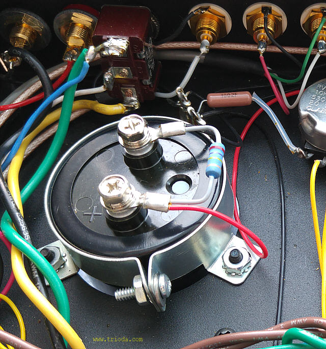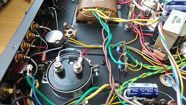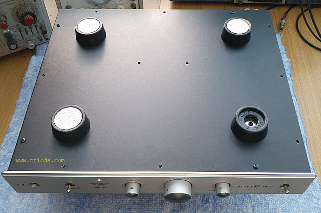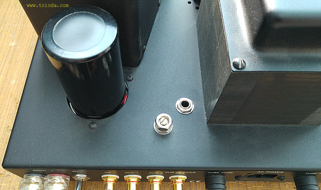 Ciekawostką, mogącą zaskoczyć użytkowników wzmacniaczy lampowych, które wymagają ustawiania prądu spoczynkowego jest fakt, że do tego celu należy wykorzystać miliamperomierz a nie woltomierz !!! Wetknięcie wtyczki do gniazda pomiarowego powoduje bowiem rozwarcie połączenia katod lamp końcowych i elementem zastępującym to połączenie musi być amperomierz, który poprzez wtyk Jack umożliwia przepływ prądu pomiędzy katodami lamp mocy i masą wzmacniacza. To dosyć niespotykane podejście, zważywszy na fakt, że we wzmacniaczu w katodach lamp końcowych zamontowane są bardzo dobre rezystory probiercze o wartościach 10Ω/1%. Sądzę, że mają one służyć nie użytkownikowi wzmacniacza a raczej serwisantowi, gdyż dostęp do nich jest możliwy dopiero po odkręceniu dolnej osłony chassis.